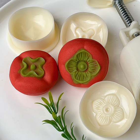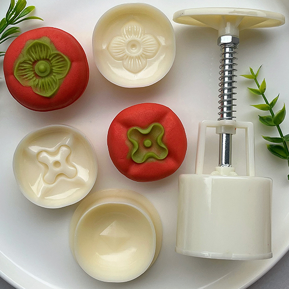 2. 1個模具配有2個不同柿子圖案的印章。一套包含一張底部印章和 2 張頂部印章。可製作50克精緻月餅或餅乾。