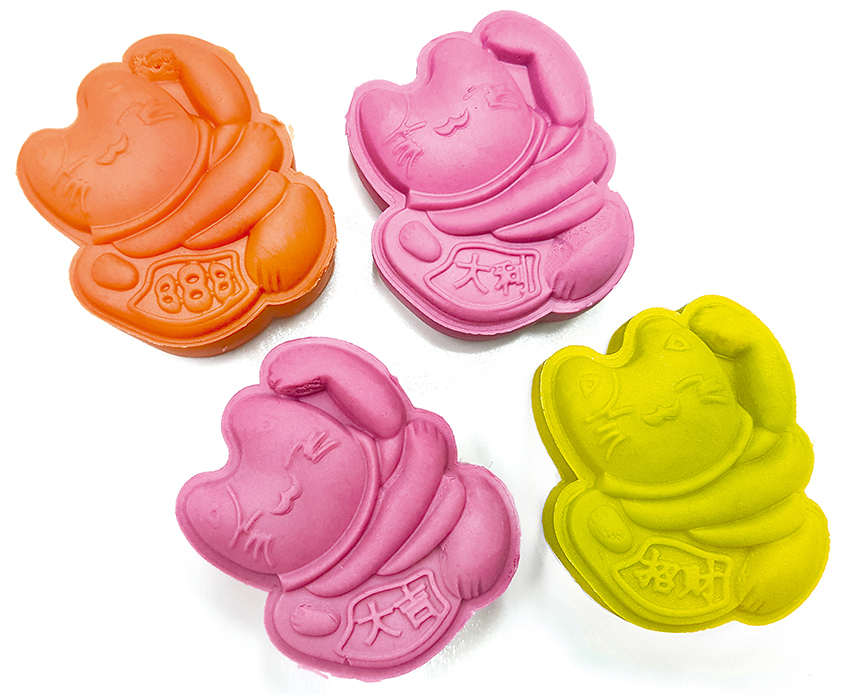 TR-079 金招財貓糕餅壓模 採用 ABS 食品級材料製成,使用方便,轉動手柄即可更換圖案片。 非常適合製作月餅、綠豆餅、南瓜餅、餅乾、糕點等等! 一壓模+4片花片 金屬件材質:#304不鏽鋼 壓棒+壓模材質:ABS (耐熱80℃) 規格:1.5兩 內徑約5x6cm 凡購買月餅模即贈送 2012S 迷你耐熱矽膠毛刷系列 (不挑色,隨機贈送) 注意事項 不可放置熱源處,不可進洗碗機、烘碗機;烤箱、微波爐內 使用完畢後請用軟性清潔劑及海綿清洗,並放置陰涼處陰乾在收藏
