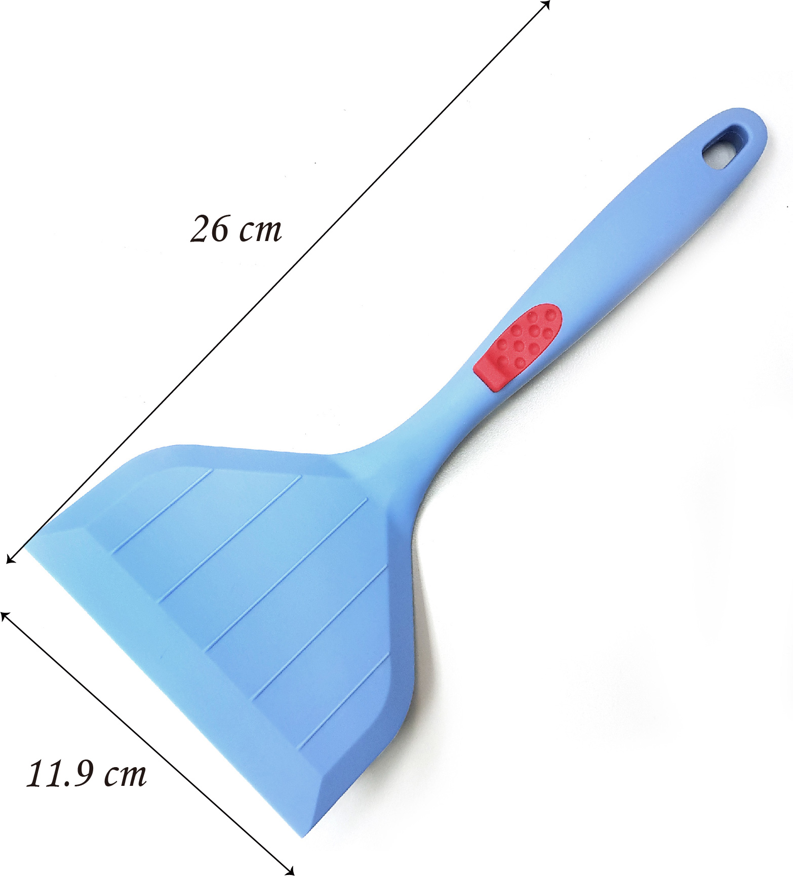 - 寬鏟頭設計,刮和翻炒食物更加輕鬆,鏟面較軟,不會刮傷光面塗層。