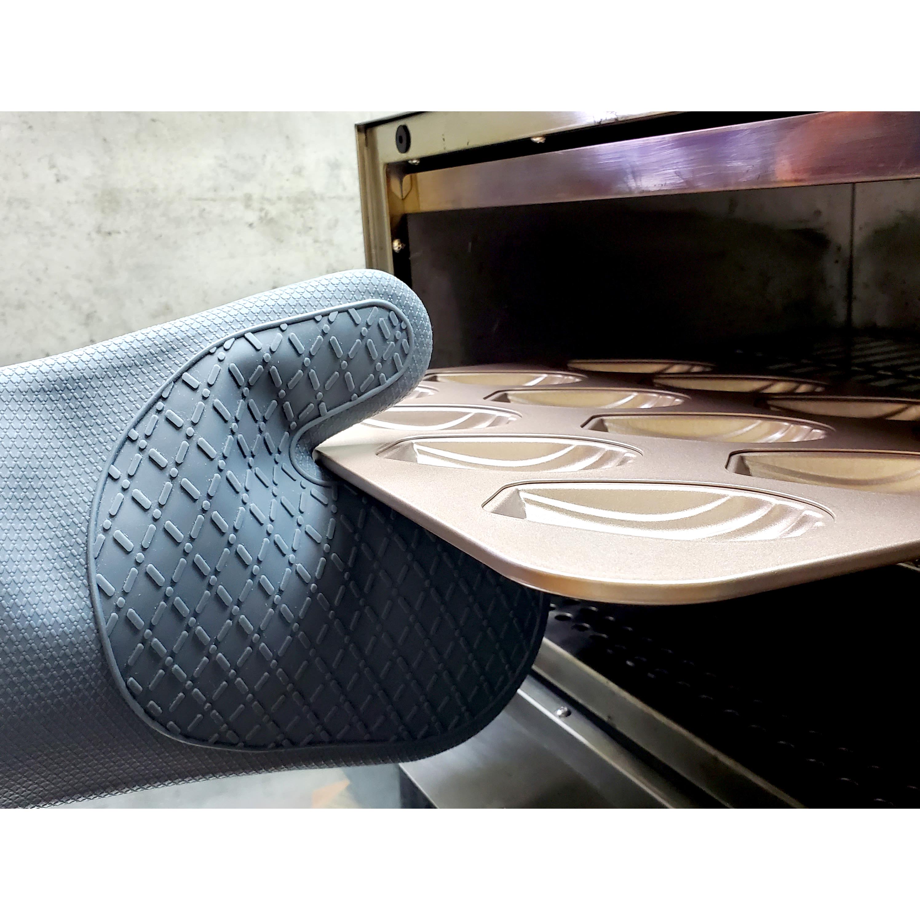 內棉加厚設計提升防護力,雙面立體紋路防滑抓握,左右手皆可使用,食品級矽膠耐熱高達 250℃,防水易清潔,料理、烘焙、烤箱取物都安心。