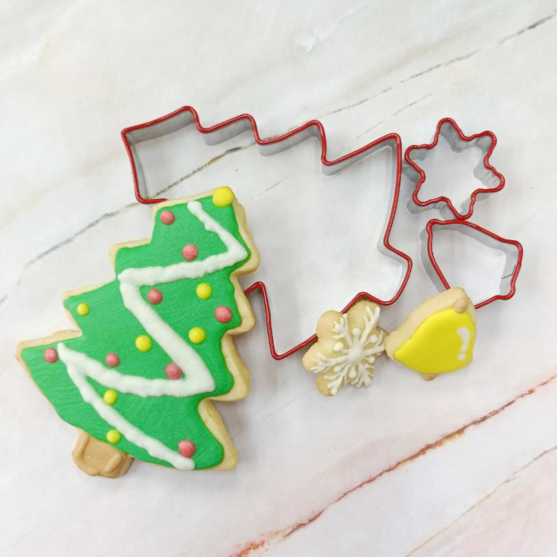 這款創意餅乾模組包含 1個大尺寸 + 2個小尺寸 聖誕樹主題餅乾模,形狀可愛,非常適合在聖誕派對上製作糖餅乾、麵包或節慶小點心。每個模具都帶有 矽膠護邊設計,在壓製餅乾時可保護雙手,讓兒童和成人都能安全操作。